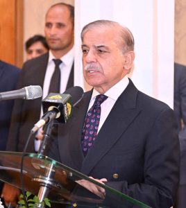 Prime Minister Muhammad Shehbaz Sharif addresses the investiture ceremony to confer the baton of Field Marshal upon Chief of the Army Staff, Field Marshal Syed Asim Munir NI(M) at Aiwan-e-Sadr