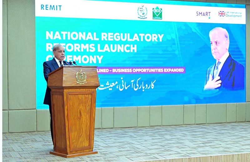 Prime Minister Muhammad Shehbaz Sharif addresses the launching ceremony of National Regulatory Reforms.