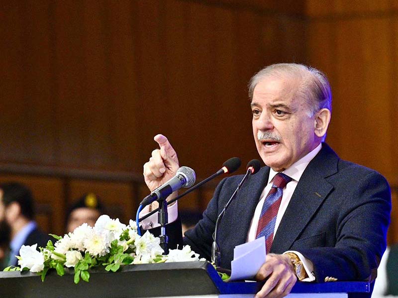 Prime Minister Muhammad Shehbaz Sharif addresses the launching ceremony of Prime Minister’s Youth Laptop Scheme 2025.