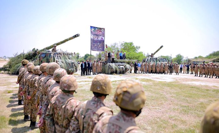 PASRUR: May 14 - Prime Minister Muhammad Shehbaz Sharif addresses the officers and soldiers who took part in Operation Bunyan-um- Marsous. APP/ABB