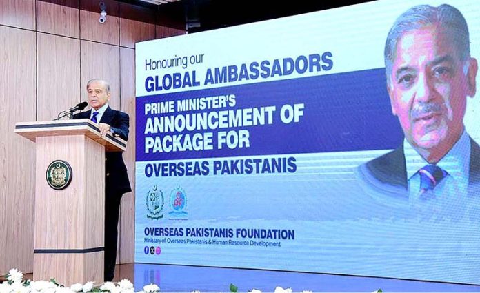 Prime Minister Muhammad Shehbaz Sharif addressing a ceremony regarding Special Incentives Package for Overseas Pakistanis