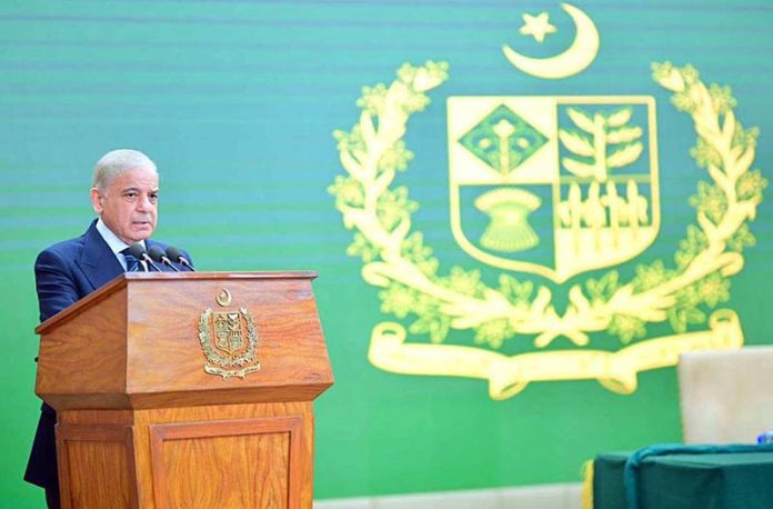 Prime Minister Muhammad Shehbaz Sharif addressing National Workshop on Khyber Pakhtunkhwa.