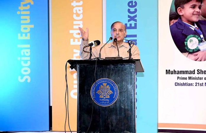 Prime Minister Muhammad Shehbaz Sharif addressing the ceremony of merit-based distribution of laptops to high- achieving students of Danish School under the Prime Minister’s Youth Laptop Scheme