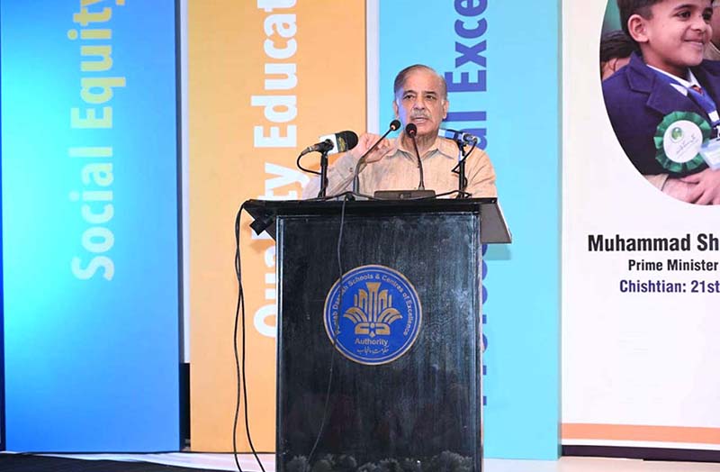 Prime Minister Muhammad Shehbaz Sharif addressing the ceremony of merit-based distribution of laptops to high- achieving students of Danish School under the Prime Minister’s Youth Laptop Scheme