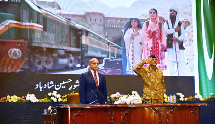 Prime Minister Muhammad Shehbaz Sharif and Chief of Army Staff General Syed Asim Munir attending National Youth Convention.