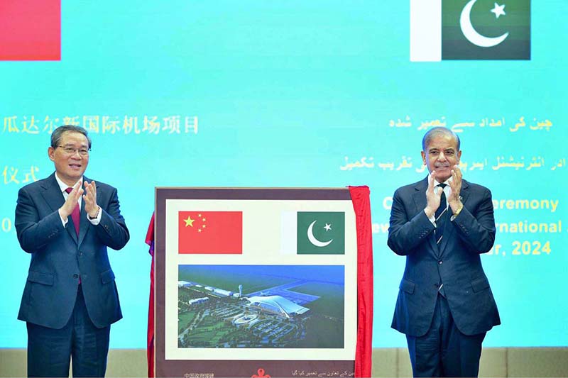 Prime Minister Muhammad Shehbaz Sharif and Chinese Premier, Li Qiang unveiling a plaque to mark the completion of New Gawadar International Airport.