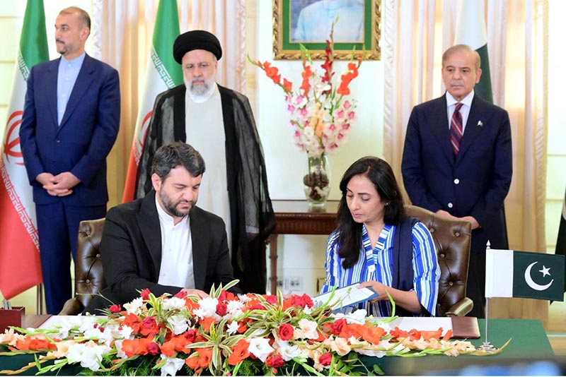 Prime Minister Muhammad Shehbaz Sharif and President of Iran H.E Dr. Seyyed Ebrahim Raisi witness signing of MoUs of cooperation in different fields between Iran and Pakistan.