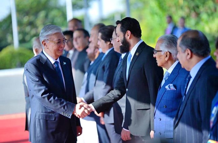 Prime Minister Muhammad Shehbaz Sharif and President of Kazakhstan Kassym-Jomart Tokayev introducing their respective delegations at the official arrival ceremony held at the Prime Minister’s House.