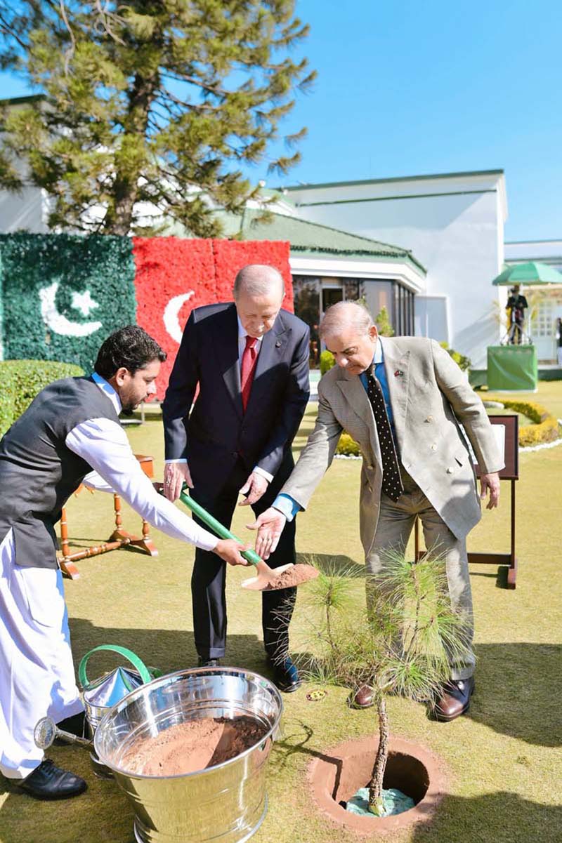 Prime Minister Muhammad Shehbaz Sharif and the President of Turkiye H.E. Recep Tayyip Erdogan plant a sapling at PM House