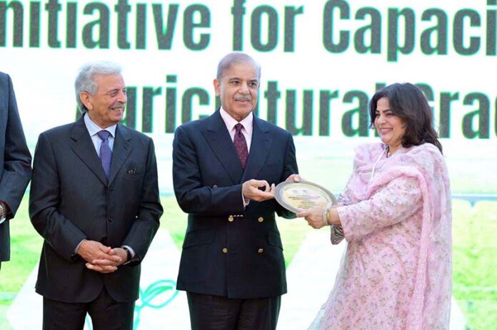 APP16-160425 ISLAMABAD: April 16 –APP17-160425 ISLAMABAD: April 16 – Prime Minister Muhammad Shehbaz Sharif awards shields to the team of Prime Minister’s initiative of sending 1000 agriculture graduates for training in China for capacity building of Agricultural Sector in Pakistan. APP/TZD