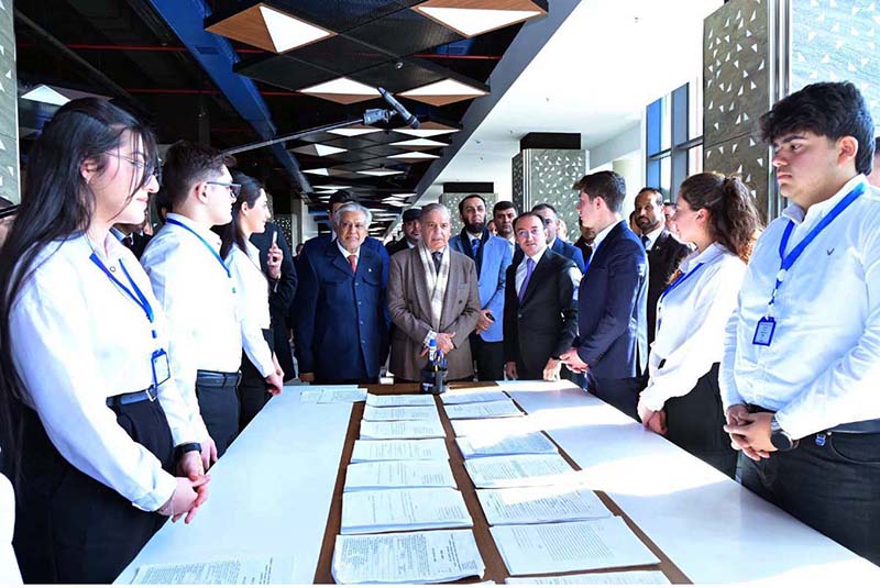Prime Minister Muhammad Shehbaz Sharif being briefed by Mr. Ulvi Mehdiyev, Chairman of the State Agency for Public Service and Social Innovation about the services offered by “ASAN KHIDMAT” during his visit to one of the centers in Baku.
