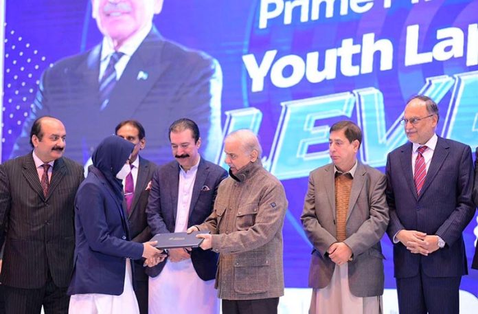 MUZAFFARABAD: December 24 - Prime Minister Muhammad Shehbaz Sharif distributed laptops among students in the University of Azad Jammu and Kashmir. APP/MAF/ABB