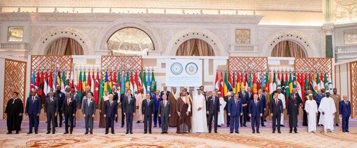 Prime Minister Muhammad Shehbaz Sharif in a group/commemorative photo of Arab-Islamic Extraordinary Summit 2024.