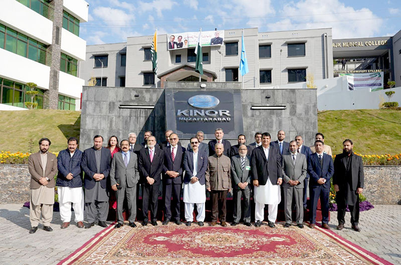 Prime Minister Muhammad Shehbaz Sharif in a group photo with the administration of Kashmir Institute of Nuclear Medicine, Oncology and Radiotherapy.