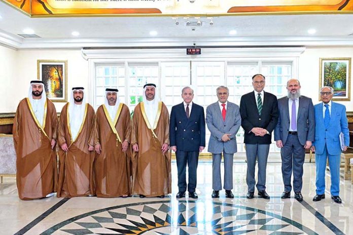 Prime Minister Muhammad Shehbaz Sharif in a group photo with UAE’s Deputy Minister of Cabinet Affairs for Competitiveness and Knowledge Exchange H. E. Abdulla Nasser Lootah