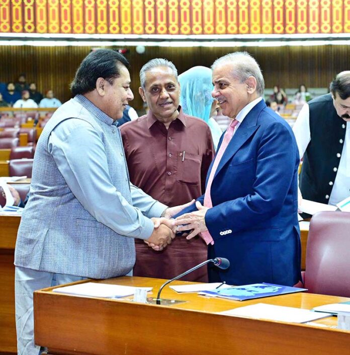 ISLAMABAD: June 26 – Prime Minister Muhammad Shehbaz Sharif interacts with parliamentarians during a session of the National Assembly. APP/TZD