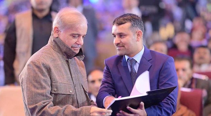 MUZAFFARABAD: December 24 - Prime Minister Muhammad Shehbaz Sharif interacts with students at the ceremony of distribution of laptops in the University of Azad Jammu and Kashmir. APP/MAF/ABB