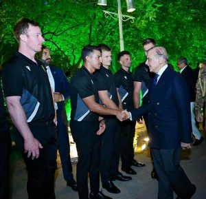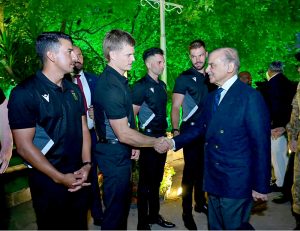 Prime Minister Muhammad Shehbaz Sharif interacts with the management and players of South African Cricket team