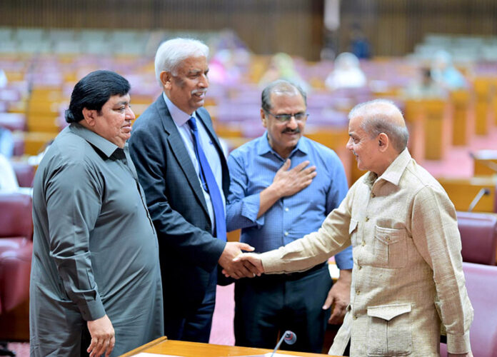 ISLAMABAD: June 27 – Prime Minister Muhammad Shehbaz Sharif interacts with the members of National Assembly during a session of the National Assembly.
