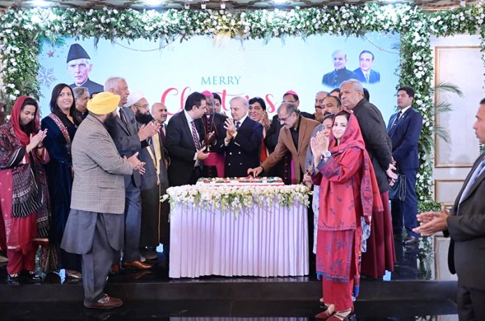 Prime Minister Muhammad Shehbaz Sharif joins cake cutting ceremony at the Christmas celebrations at PM House.