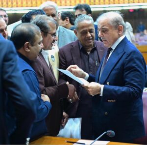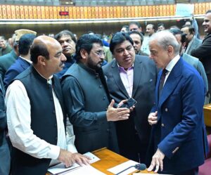 ISLAMABAD: January 21 – Prime Minister Muhammad Shehbaz Sharif meeting MNAs during National Assembly Session at Parliament House. APP/IQJ/FHA