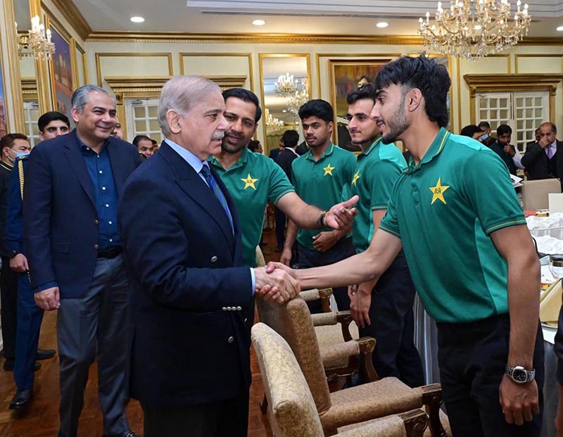 ISLAMABAD: December 22 - Prime Minister Muhammad Shehbaz Sharif meets members of the under-19 Pakistan Cricket Team which won the U-19 Asia Cup 2025. APP/FHA