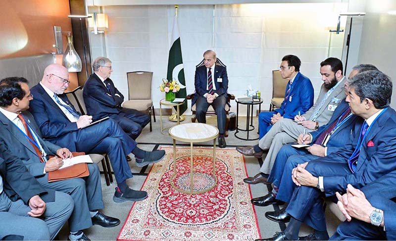 Prime Minister Muhammad Shehbaz Sharif meets Mr. Bill Gates, founder and co-chair of the Bill & Melinda Gates Foundation (BMGF) on the sidelines of the 79th Session of the United Nations General Assembly.