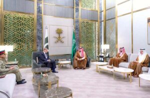 Prime Minister Muhammad Shehbaz Sharif meets the Crown Prince and Prime Minister of Saudi Arabia H.E. Muhammad bin Salman al-Saud.