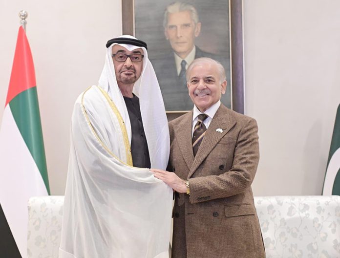 Prime Minister Muhammad Shehbaz Sharif meets the President of UAE, Mohamed bin Zayed al-Nahyan.