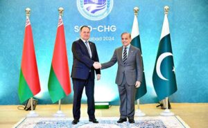Prime Minister Muhammad Shehbaz Sharif meets with Prime Minister of Belarus, Roman Golovchenko on the sidelines of Shanghai Cooperation Organisation Council of Heads of Government Meeting.