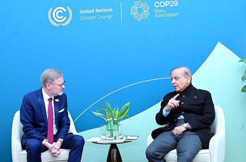 BAKU: November 12 – Prime Minister Muhammad Shehbaz Sharif met the Prime Minister of the Czech Republic, Petr Fiala, on the margins of the World Leaders Climate Action Summit.
