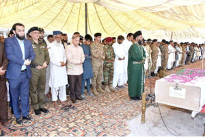 Prime Minister Muhammad Shehbaz Sharif offers the Namaz-e-Janazah for Captain Muhammad Faraz Ilyas who embraced Shahadat in Lakki Marwat