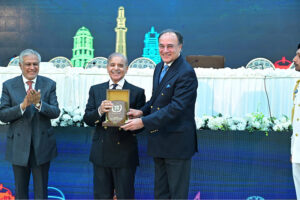 HomePhotosNational PhotosPrime Minister Muhammad Shehbaz Sharif presents appreciation shields to the members of...