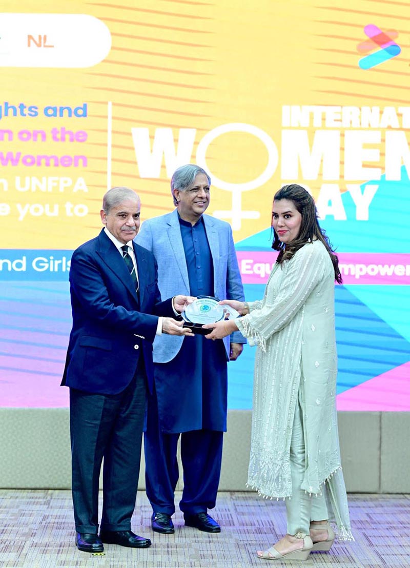 ISLAMABAD: March 08 – Prime Minister Muhammad Shehbaz Sharif presents awards to private companies who implemented family friendly policies, at International Women’s Day ceremony. APP/FHA