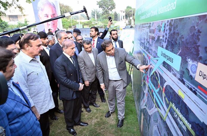 ISLAMABAD: November 05 – Prime Minister Muhammad Shehbaz Sharif is being briefed on the construction of Jinnah Avenue-9th Avenue intersection.