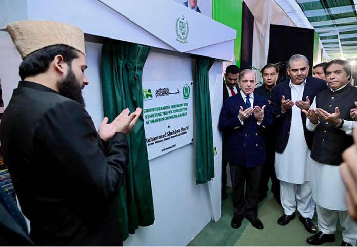 Prime Minister Muhammad Shehbaz Sharif unveils the ground breaking plaque of Shaheen Chowk Interchange