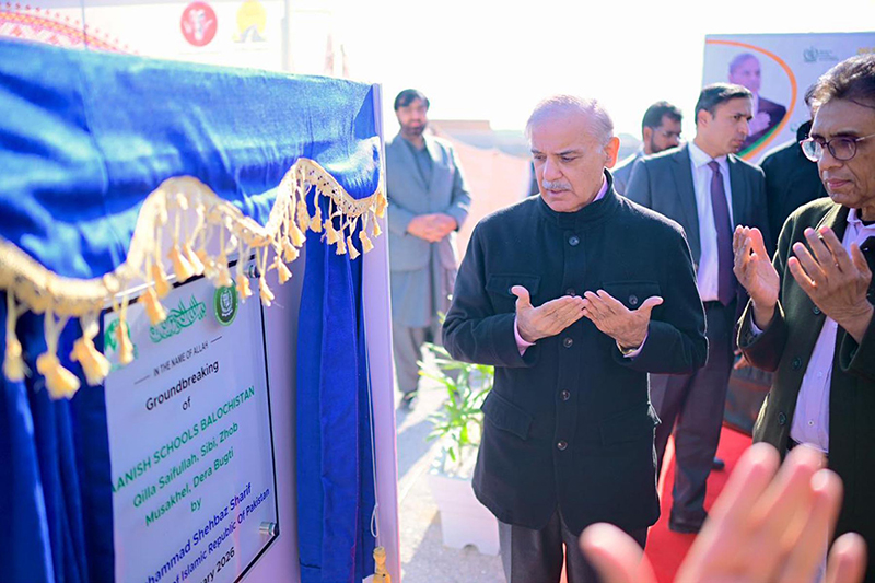 Prime Minister Muhammad Shehbaz Sharif unveils the plaque of groundbreaking of Danish Schools in Balochistan
