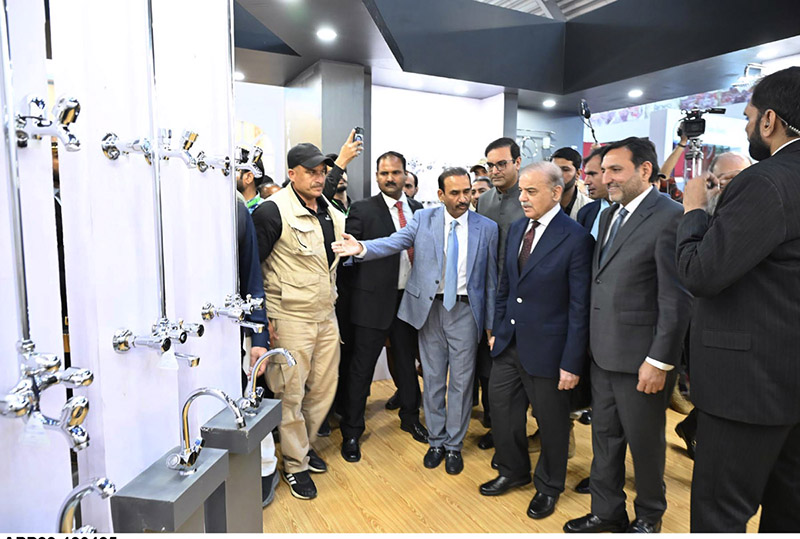 APP23-190425 LAHORE: April 19 – Prime Minister Muhammad Shehbaz Sharif visits stalls at the Health, Engineering and Minerals Show at the Expo Centre. APP/ABB