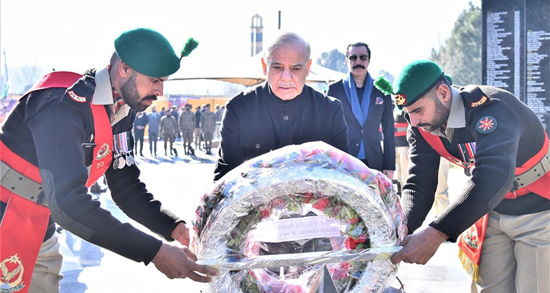 MUZAFFARABAD: February 05 – Prime Minister of Pakistan Muhammad Shehbaz Sharif and Prime Minister of Azad Jammu and Kashmir Raja Faisal Mumtaz Rathore laying floral wreath at Azad Jammu and Kashmir Yadgar-e-Shuhada on the occasion of Kashmir Solidarity Day. APP/ABB