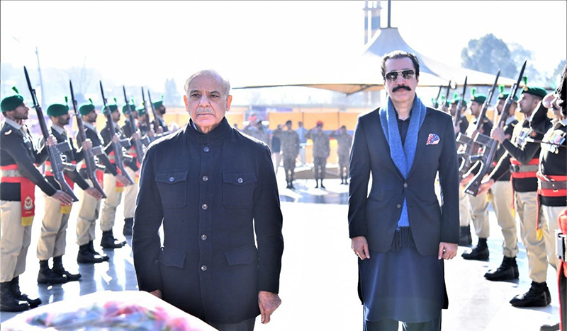 APP23-050226 MUZAFFARABAD: February 05 –APP24-050226 MUZAFFARABAD: February 05 – Prime Minister of Pakistan Muhammad Shehbaz Sharif and Prime Minister of Azad Jammu and Kashmir Raja Faisal Mumtaz Rathore laying floral wreath at Azad Jammu and Kashmir Yadgar-e-Shuhada on the occasion of Kashmir Solidarity Day. APP/ABB