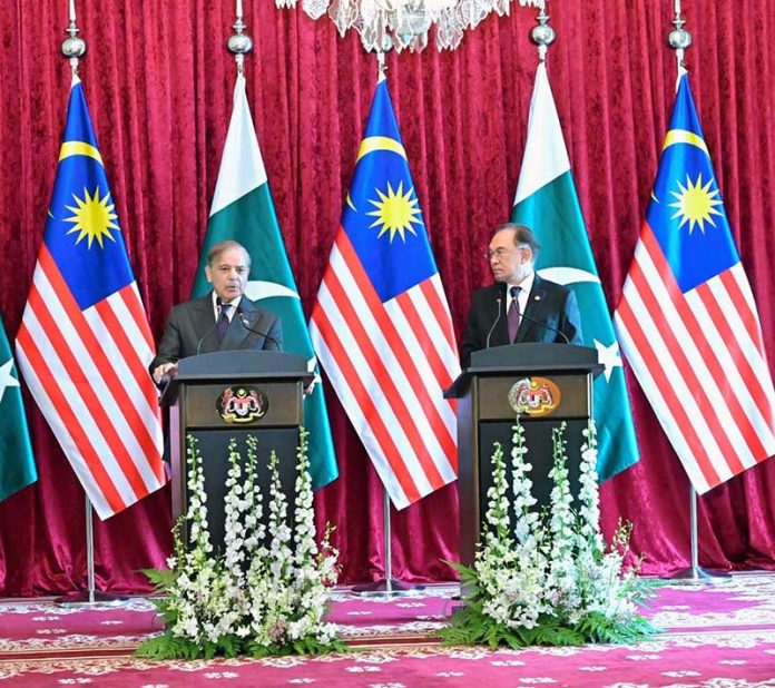 APP16-061025 PUTRAJAYA: October 06 – APP17-061025 PUTRAJAYA: October 06 – Prime Minister of Pakistan Muhammad Shehbaz Sharif and Prime Minister of Malaysia Dato Seri Anwar Ibrahim giving Joint Press statement. APP/TZD