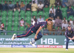 Quetta Gladiators player Saud Shakeel plays shot during the Pakistan Super League PSL-X T20 cricket match between Quetta Gladiators and Karachi Kings at the Gaddafi Cricket Stadium