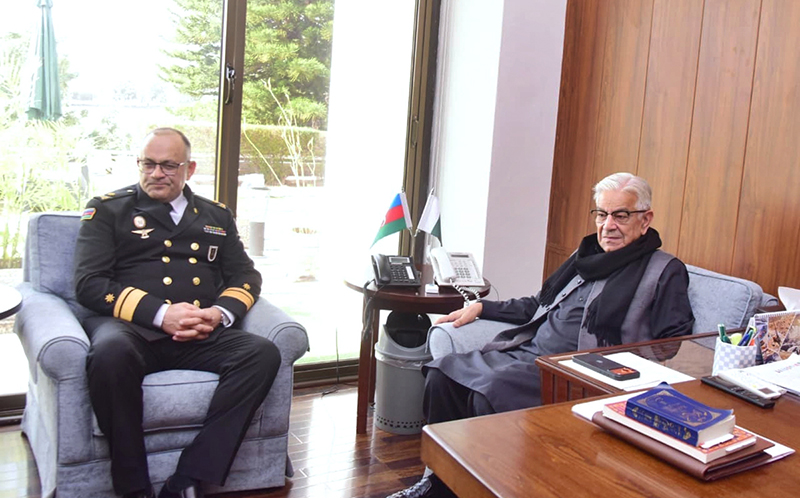 Rear Admiral Shahin Mammadov, Commander of Azerbaijan Naval Forces, meets Defence Minister Khawaja Muhammad Asif.