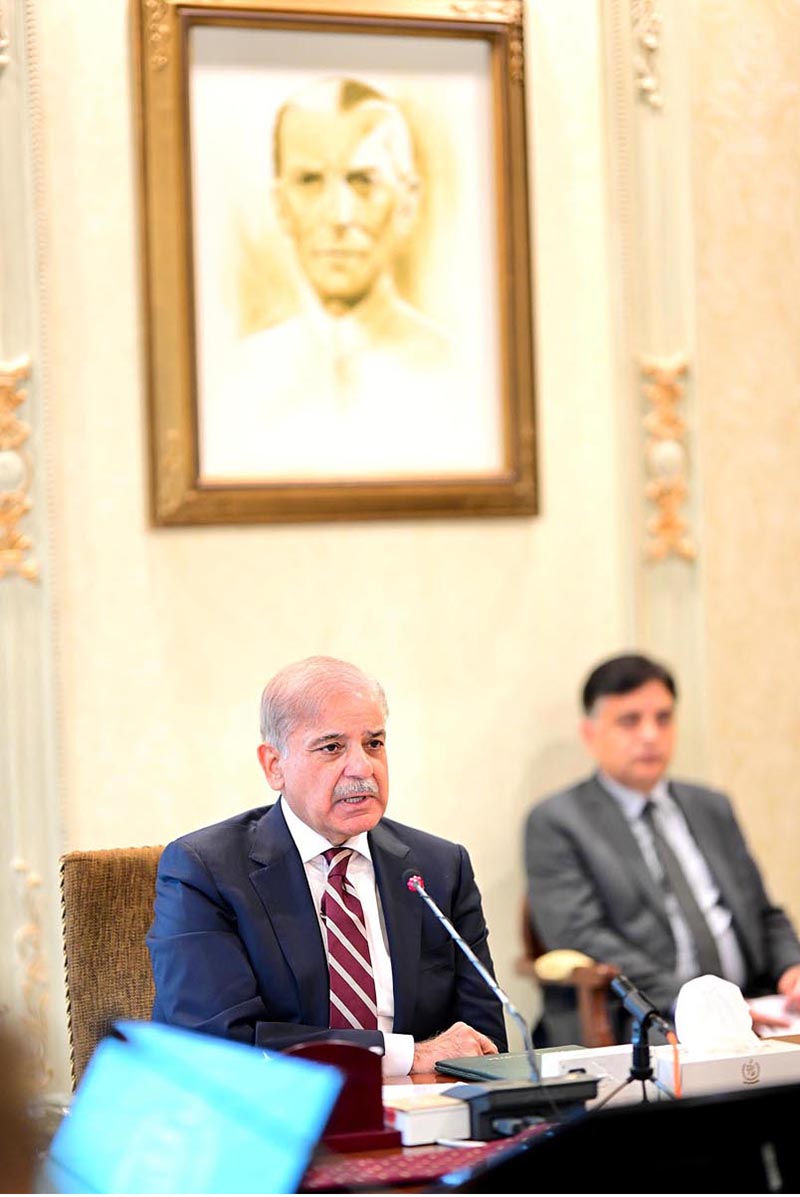 ISLAMABAD: August 01 - Prime Minister Muhammad Shehbaz Sharif chairing a consultative meeting of Allied Parties regarding deteriorating situation in Palestine.