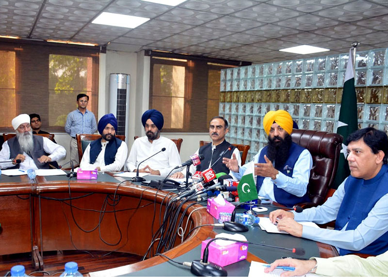Sardar Ramesh Sungh Arora, Punjab Minister for Minorities Affairs and President of the Pakistan Sikh Gurdwara Parbandhak Committee addressing to media