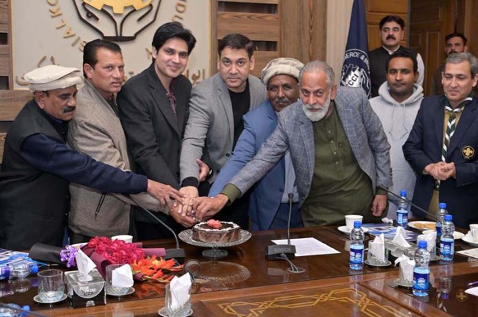 SIALKOT: December 23 - Senior Vice President Muhammad Murad Arshad, Vice President Sheikh Suleman Sheikh, and Christian Scouts cut the Christmas cake during the ceremony. APP/MUT/FHA