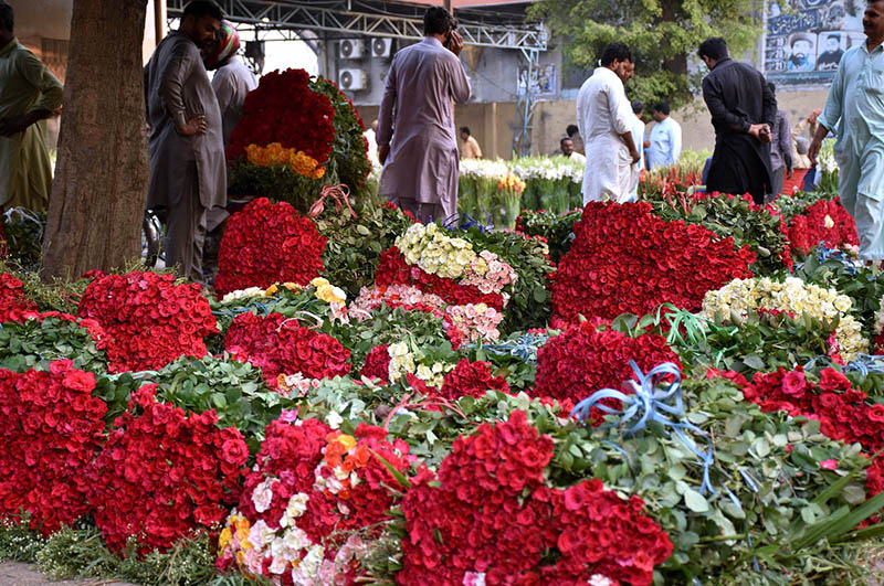 LAHORE: May 24 – Wholesale vendors displaying and selling flowers and flowers petals to attract the shopkeepers at Wholesale flowers market.