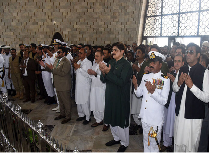 Sindh Chief Minister Syed Murad Ali Shah, Governor Sindh Mohammad Kamran Tessori, provincial ministers, advisors and Chief Secretary Asif Hyder Shah offer Dua at Mazar-e-Quaid