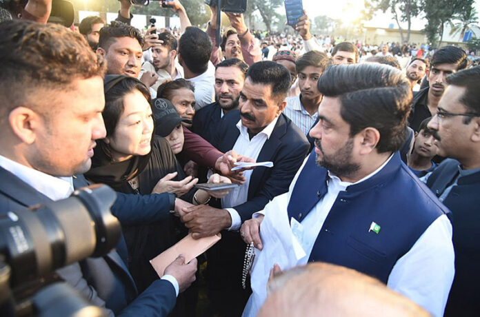 HomePhotosNational PhotosSindh Governor Kamran Khan Tessori receives applications from the complaints during an...