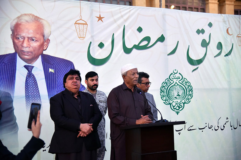 KARACHI: March 16 – Sindh Governor Muhammad Nehal Hashmi sitting with the participants of Ronaq-e-Ramazan Iftari program started again at the Governor House. APP/SDQ/FHA